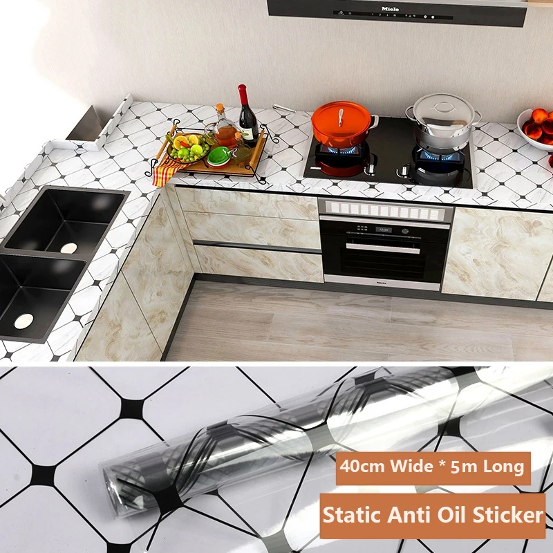 Desktop Furniture Protective Film Self-adhesive Kitchen Marble Anti-oil Resistant Stickers Stove Tile Wall Stickers Glue-free