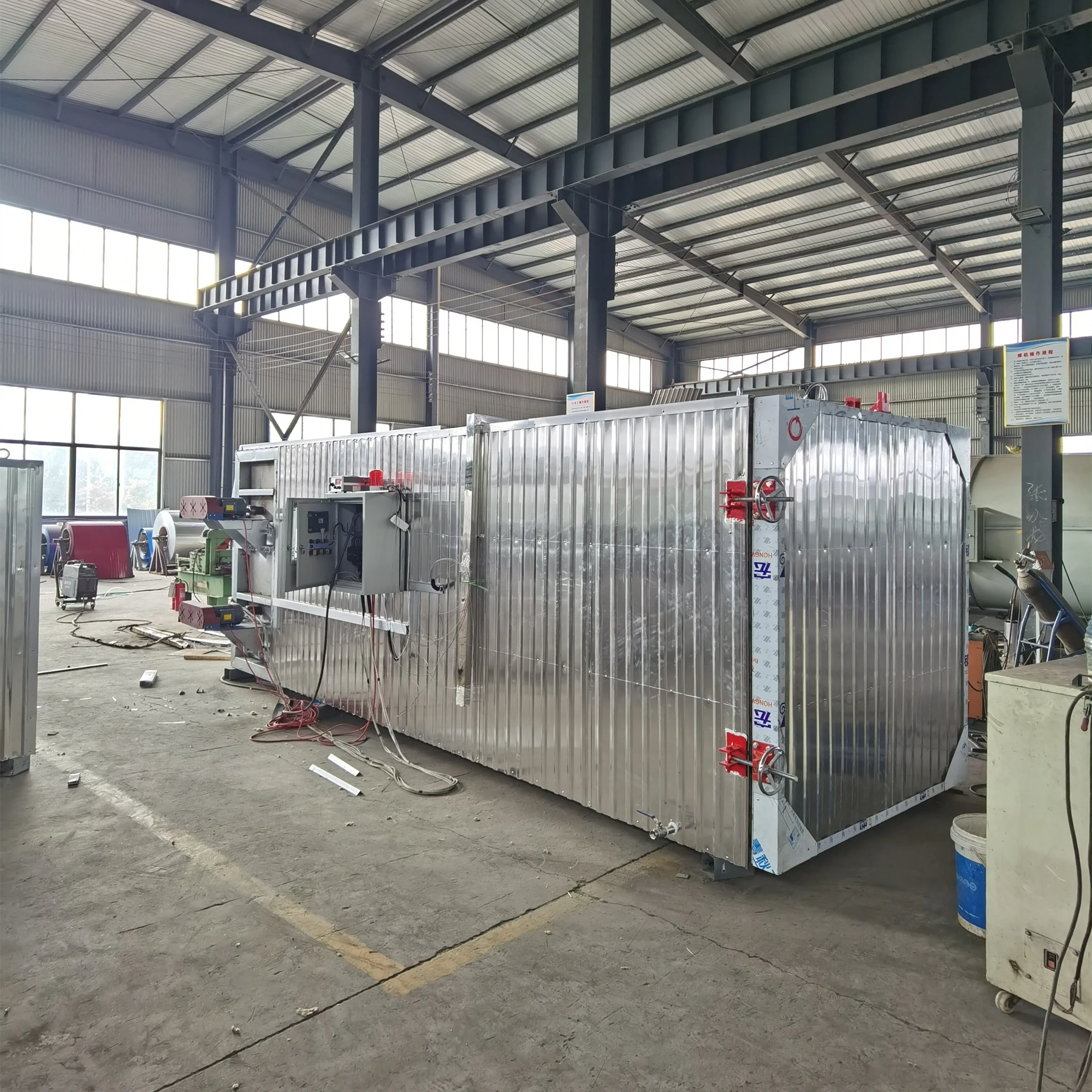 Woodworking wood timber carbonization changing color treating drying seasoning chamber dryer kiln oven trailer room machine